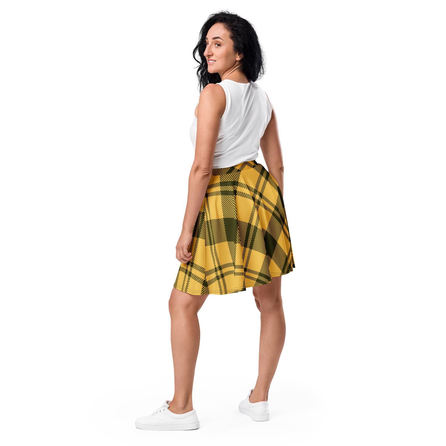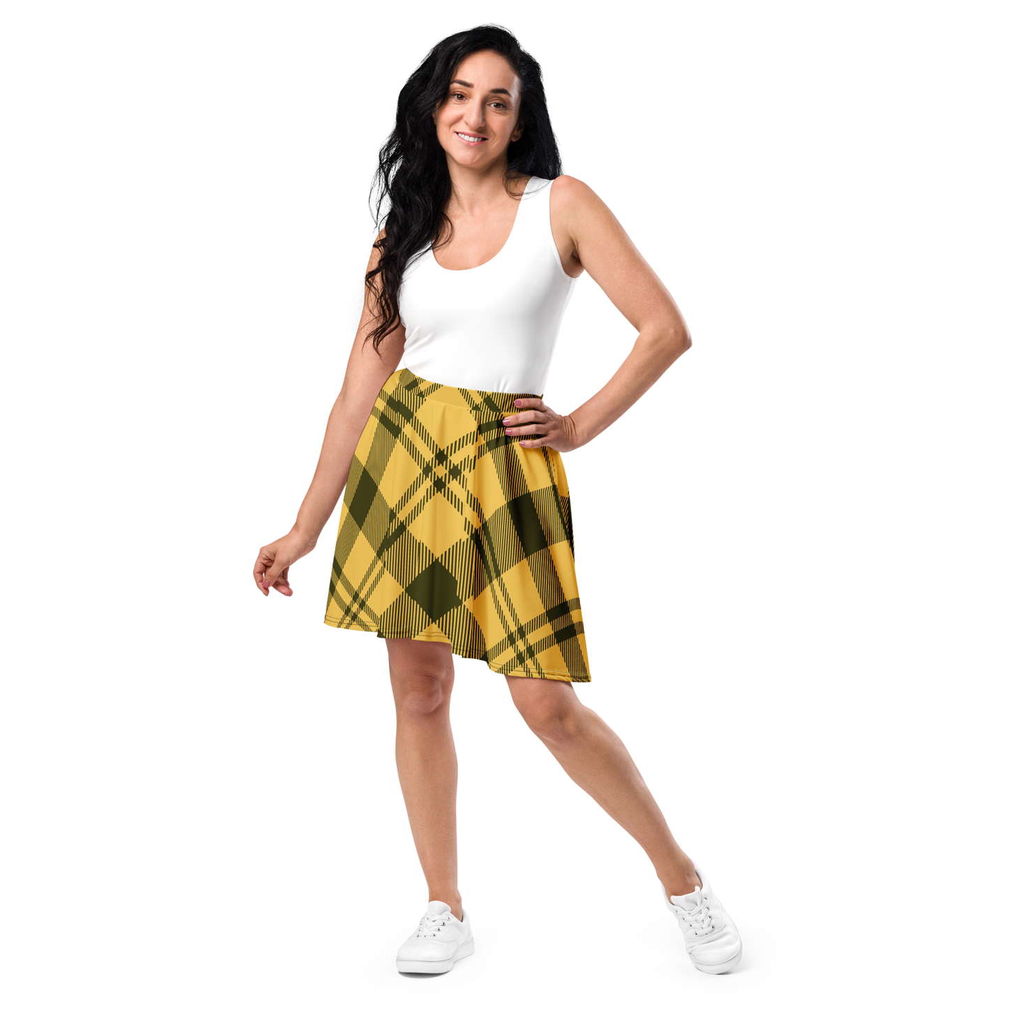 Classic charm meets modern flair with this skirt, featuring bold yellow checks interwoven with sleek black lines. The playful pattern and flattering skater silhouette make it an easy favorite for everyday wear or casual outings. Whether paired with sneakers or boots, this eye-catching look brings energy and style to any ensemble.