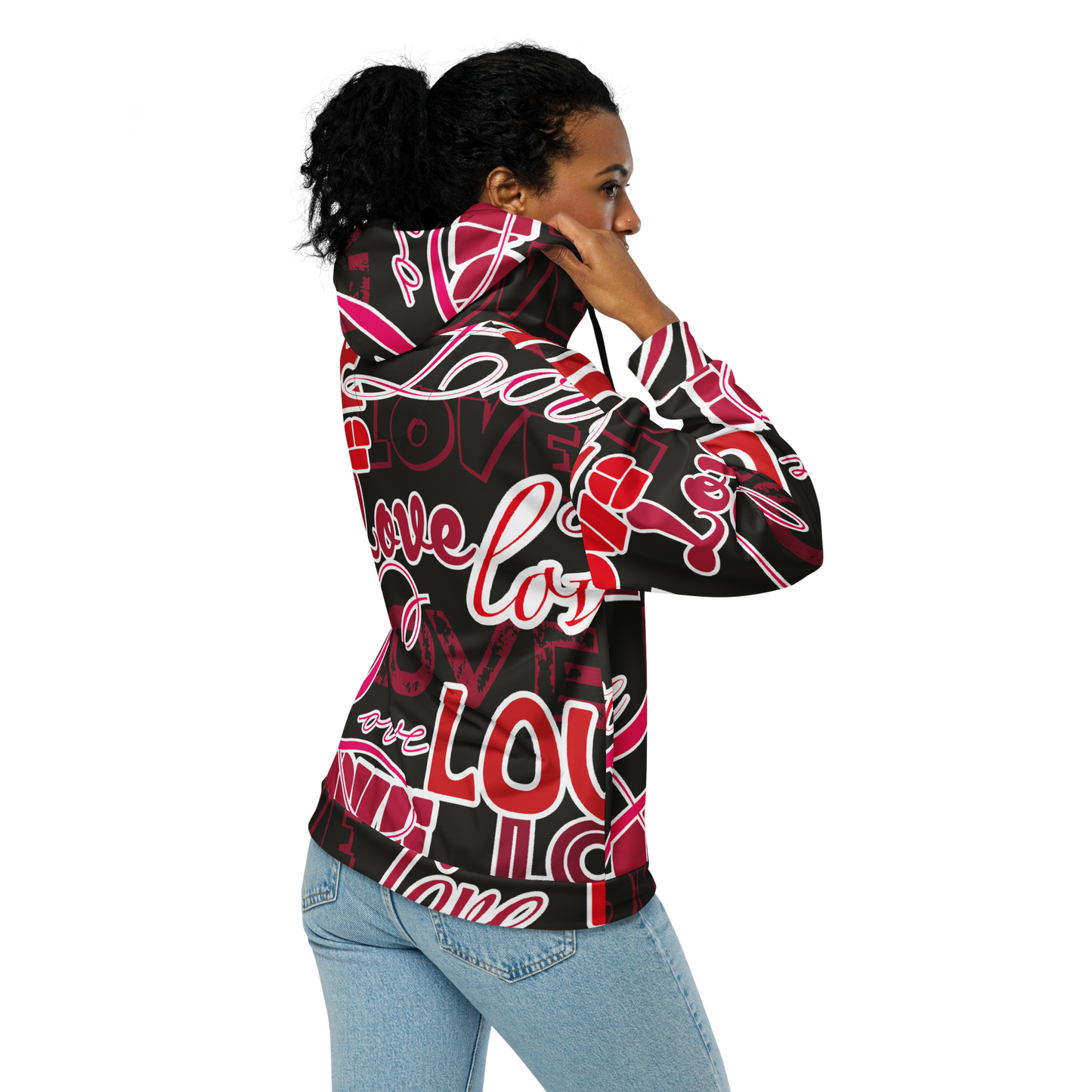 Energetic lettering in rich reds and bright whites dances across a deep backdrop, creating a hoodie that captures playful confidence. Chunky and cursive styles intertwine, offering a look that's both eye-catching and expressive for those who love to stand out with every wear. The bold contrast is perfect for any streetwear-inspired wardrobe.